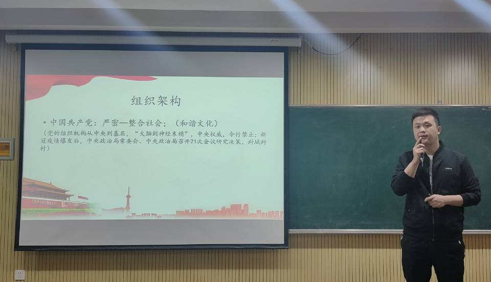李振超以《在比较分析中认知制度优势》为题,从中美政党制度内涵、特点、组织架构、本质、治理效能等方面展开讲解,同时结合新冠疫情防控等典型案例,对中国新型政党制度的“新”及其优势进行了重点讲解,引导青马学员增强制度自信,提升民族自尊心、自信心和自豪感。