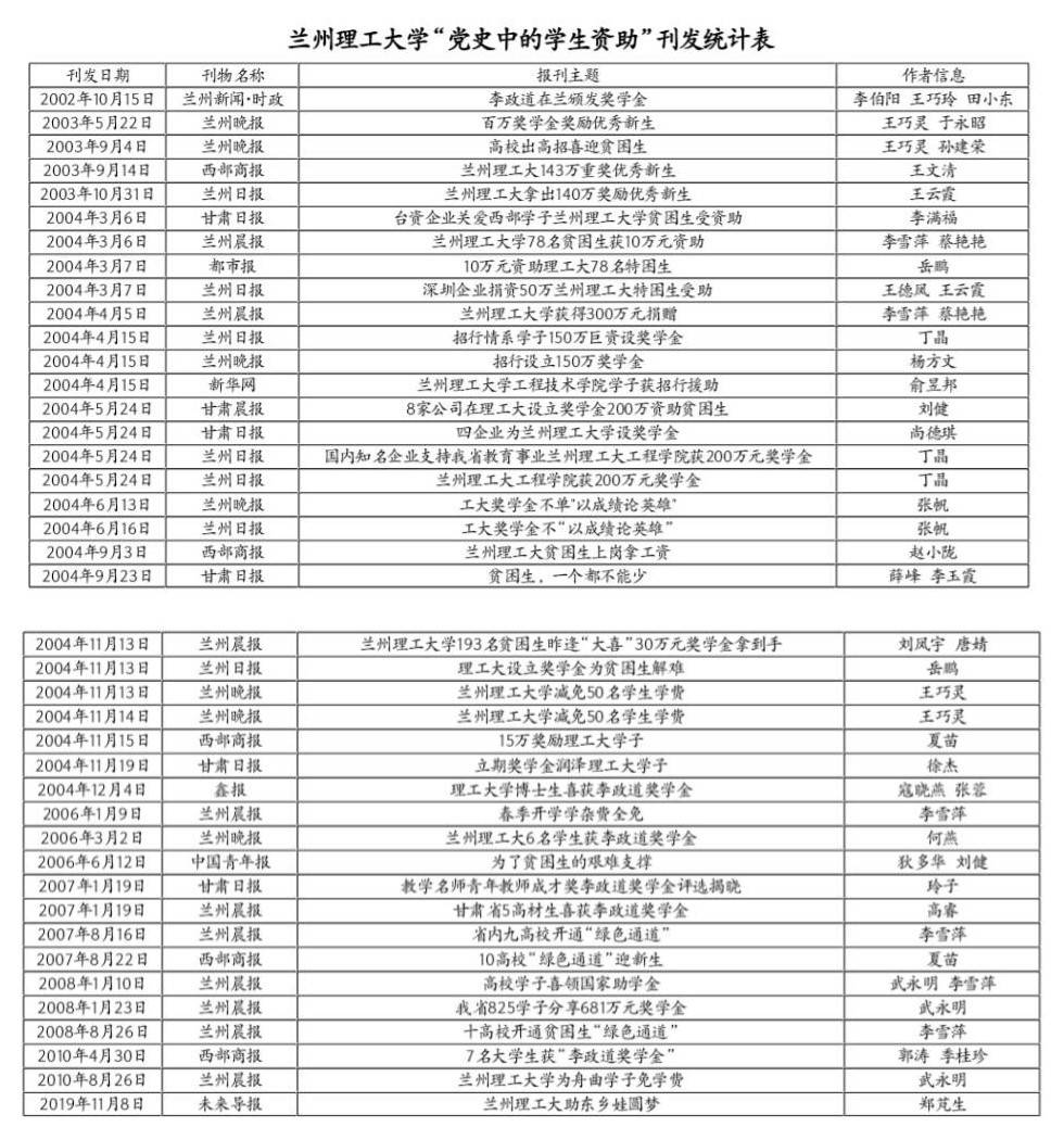 学校“党史中的学生资助”刊发统计表