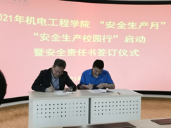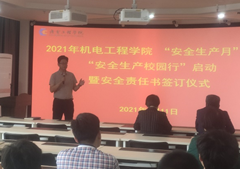 党委书记王正民要求大家以“消除事故隐患,筑牢安全防线”为主题,以加强疫情防控常态化条件下涉校涉生安全管理和安全风险隐患排查整治为重点,扎实推进问题整改,坚决遏制涉校涉生重特大事故发生,并宣布机电工程学院2021年“安全生产月”活动启动。院长安宗文代表学院和本学期新晋的五个科研实验室负责人签署了相关实验室安全责任书。