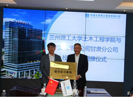 5月21日,土木工程学院与中建五局三公司甘肃分公司举行校企合作协议签约暨揭牌仪式。院长王文达教授、副院长周风玺教授、建筑工程系吴长副主任,中建五局三公司甘肃分公司总工程师林景祥、副总经理刘兆兰、办公室主任周婷、项目经理李明阳及我校校友代表设计经理朱占亮、生产经理苟彦童出席了仪式。