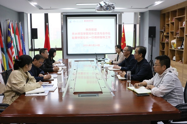 5月14日上午,天水师范学院对外交流与合作处副处长赵春林、外事科副科长张娜,文学与文化传播学院余粮才教授、雍文婧老师,就国际学生招生录取、人才培养、管理服务等工作来校开展调研交流。学院班子成员及招生工作办公室、学生工作办公室负责人参加调研座谈。