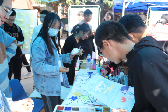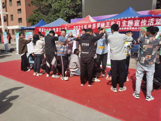 活动通过展板宣传、发放彩页、现场咨询、现场讲解等形式向大家普及精神卫生知识,面对2021级新生还重点介绍了适应主题的相关知识以及学校心理健康教育资源,为有需要的同学提供一对一的心理帮助和辅导,引导大家正确看待心理疾病;此外,还设有游戏活动区,同学们通过参与团体辅导、游戏互动等放松心情,体验快乐。活动共发放500张宣传彩页,吸引近千名同学参加。