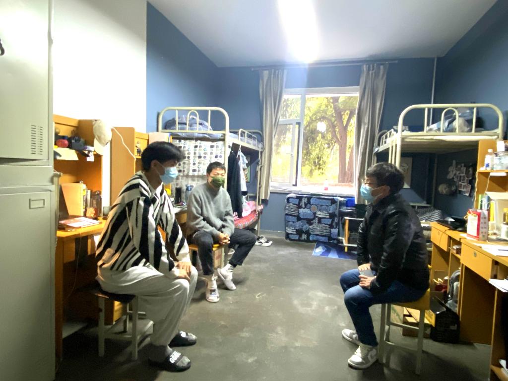 辅导员和学生干部,在做好防疫措施的情况下,深入到学生宿舍中,了解大家近期的困难,疫情期间的心理健康动态,传达学校各方面管理规定,特别强调了食堂无法堂食的情况下,在宿舍就餐后务必要确保宿舍的干净卫生,时常通风,戴好口罩。
