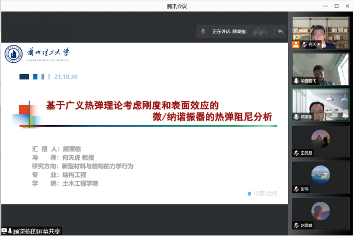 此次线上研讨会由兰州理工大学红柳学科建设经费资助。会议的成功召开,给大家提供了一次分享成果、交流思想、碰撞观点的机会和平台,也为我校力学学科的持续发展提供了新模式新路径。(撰稿:何鹏飞;终审:刘全恩)