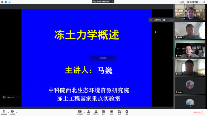 中国科学院西北生态环境资源研究院马巍研究员做了题为《冻土力学概述》的学术报告。报告人结合多年来的研究成果,重点介绍了冻土的基本特征、冻土力学的研究范畴和研究方法、冻土力学的发展历史和学科的形成过程、工程建设中面临的主要冻土力学问题以及冻土力学研究的未来发展方向。