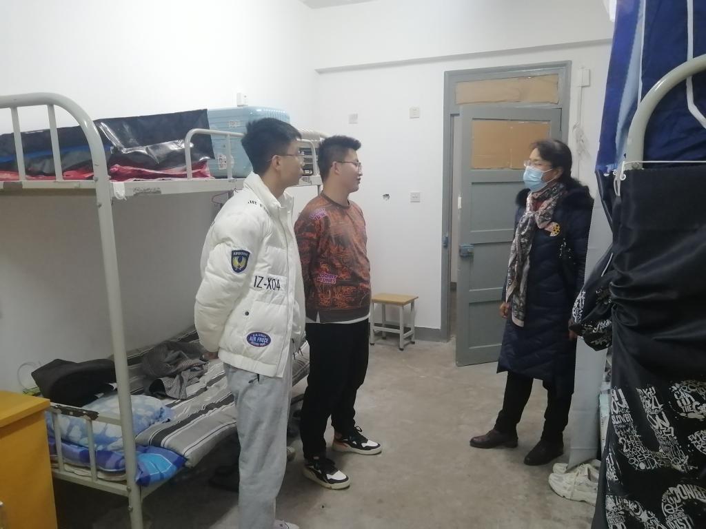 武军莉对认真学习,卫生良好的宿舍表示肯定,鼓励他们继续保持,在疫情期间勤奋努力,充实自己。