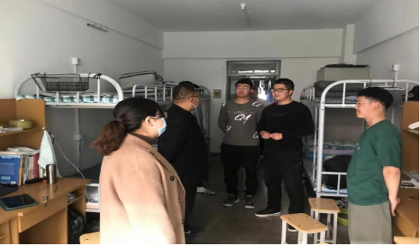 11月4日下午,理学院党委书记刘全恩、院长欧志英、副院长马军、副书记杨合立以及辅导员翟亚男深入走访学生宿舍,指导检查疫情期间学生宿舍网格化管理防疫工作落实情况,并慰问关心学生的学习生活情况,了解疫情期间学生遇到的实际困难。