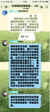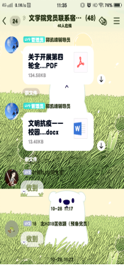 通过建立QQ群,文学院的老师党员和学生党员与每间宿舍建立了一对一的联系帮扶关系,老师党员及时在群里分享疫情防控的相关通知并督促学生党员和发展对象落实相关防疫工作。