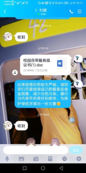 各“党员联系人”积极配合防疫工作,向各宿舍传达疫情防控、自带餐具用餐、快递接收等要求和近期注意事项,及时向学生传达疫情防控的错误做法并由党员联系人及时了解情况,有则督促改正。