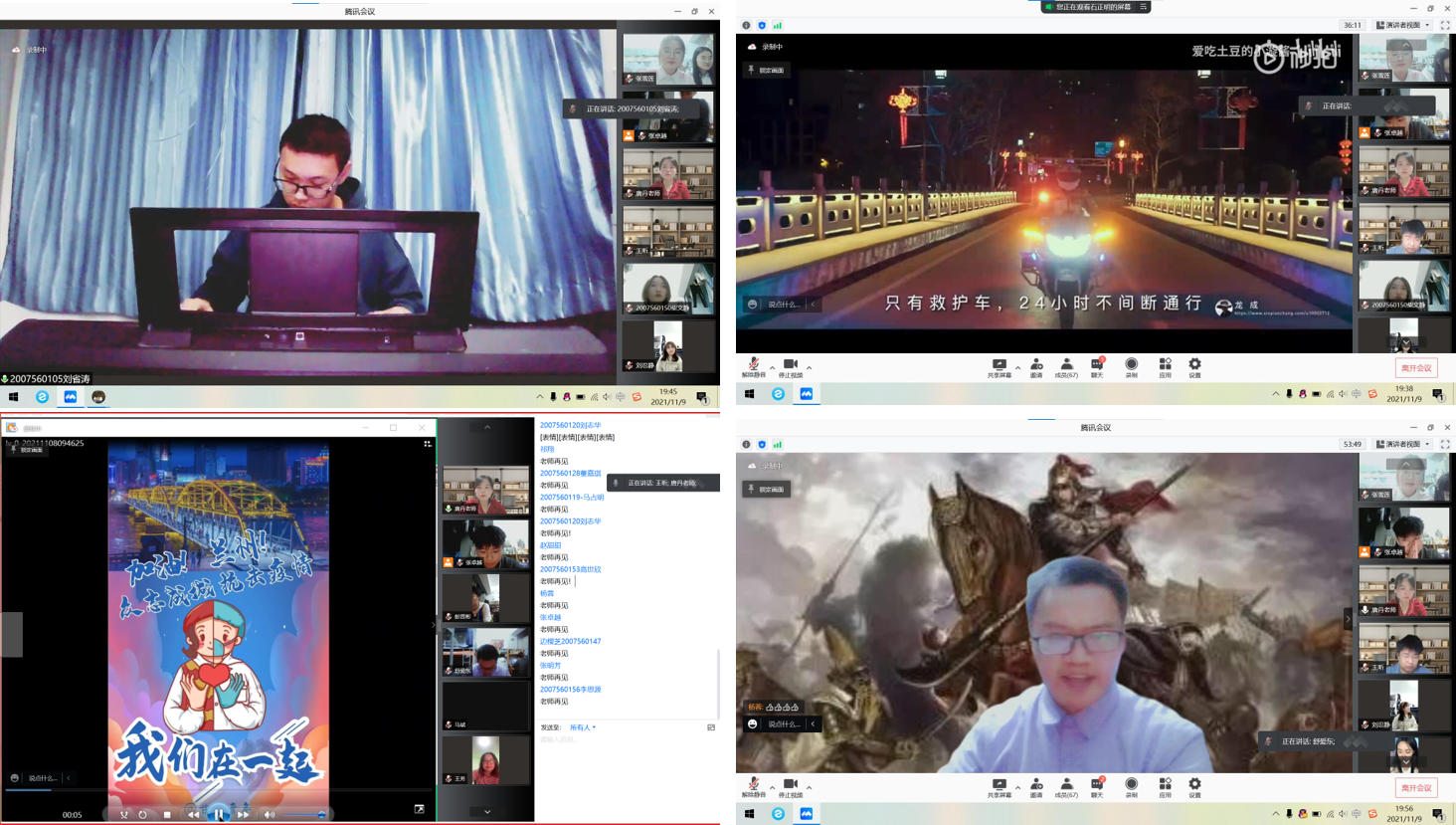 接下来,20级生物工程一班刘忍静与石正明同学宣布班会正式开始。播放了抗疫小视频之后,同学们的精彩表演便依次开始,优美的钢琴独奏萦绕耳畔,合唱《晴天》、《遇见》、《平凡之路》扣人心弦,激情慷慨的《老将行》、《再别康桥》朗诵奔涌于岁月长河,游戏《谁是卧底》也班会增添了互动和色彩。最后,播放了18级生物工程一班制作的“加油!甘肃!”的抗疫小短片,呼吁同学们出门戴口罩、行动听指挥。