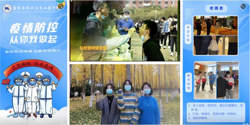 同学们通过了解国内疫情发展动态,发掘疫情期间典型人物,积极开展抗疫宣传的网络宣传教育创作。他们用自己的视角、语言、体验,通过“读”“写”“唱”“拍”“画”“创”等形式进行创作文章、短视频等网络宣传作品,开展疫情防控思想教育引导。活动期间征集了同学们所创作的优秀作品,其中包括关于防疫的海报类、诗歌类、文章类、视频类、H5等作品。同学们所提交的作品内涵丰富、主题突出,充满正能量。在欣赏同学们的创作时,既体会到防疫工作的重要性,也体会到了同学们对抗击疫情的决心与信心。