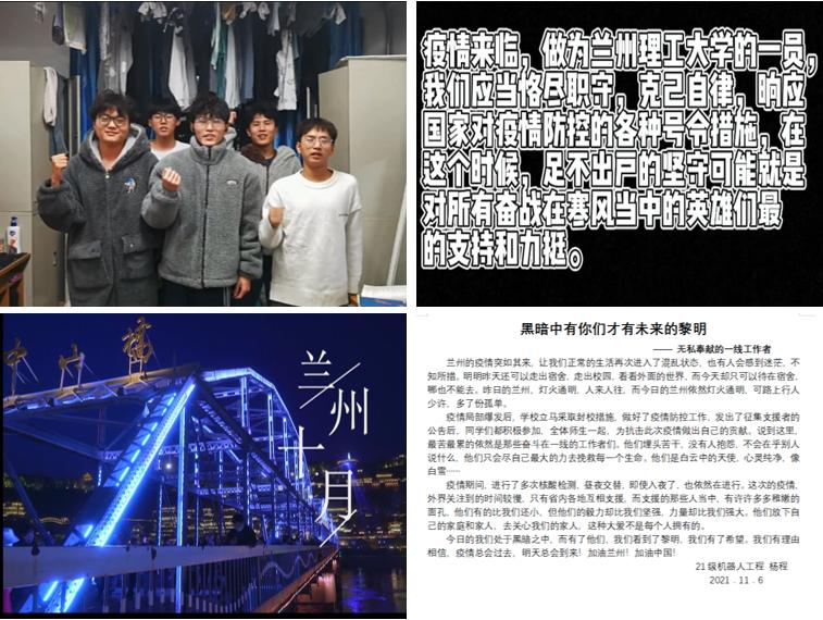 参与活动的李志涛同学说:“在疫情发生后,我们虽然都有担任志愿者的愿望,但是未必都会在抗疫第一现场,因此我们可以用自己喜欢、擅长的方式,参加抗疫‘第二线’、‘第三线’的工作。通过拍摄战疫短视频等方式,为大家加油鼓气。”