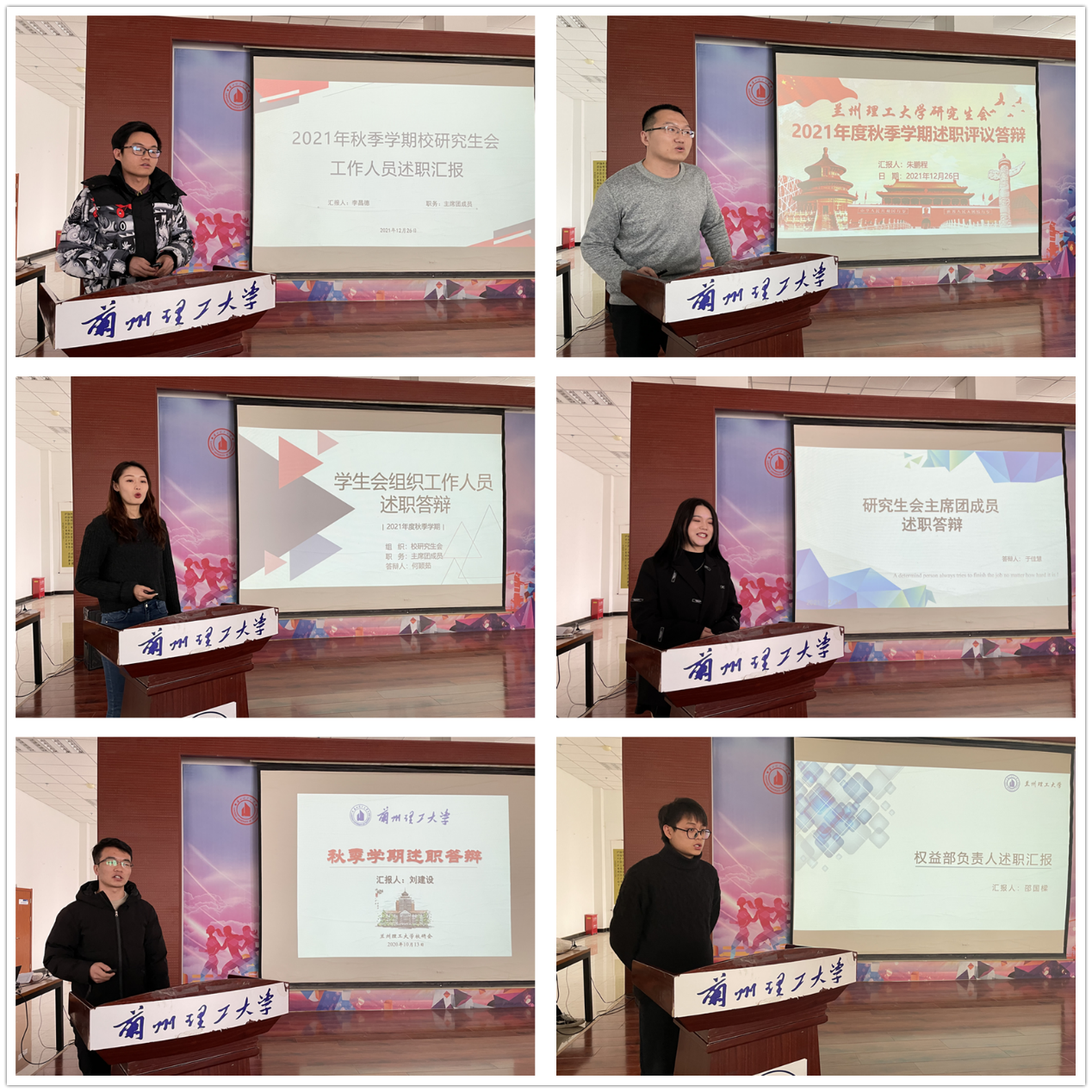 评议会上,校学生会、研究生会主席团成员及各工作部门负责人从政治理论学习、工作成效、个人成长和未来工作计划四个方面进行了述职,评议会从政治态度、道德品行、学习情况、工作成效、纪律作风等方面进行了综合评价。