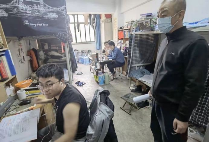 为进一步做好学校疫情防控工作,深入了解经管学院学生在封校管理期间学生日常生活与学习状况,积极协调处理在疫情期间所遇到的困难,3月17日,学院党委书记罗繁荣、院长李亚兵以及辅导员老师们前往南村学生宿舍看望慰问学院学生,并与学生开展深入交流。
