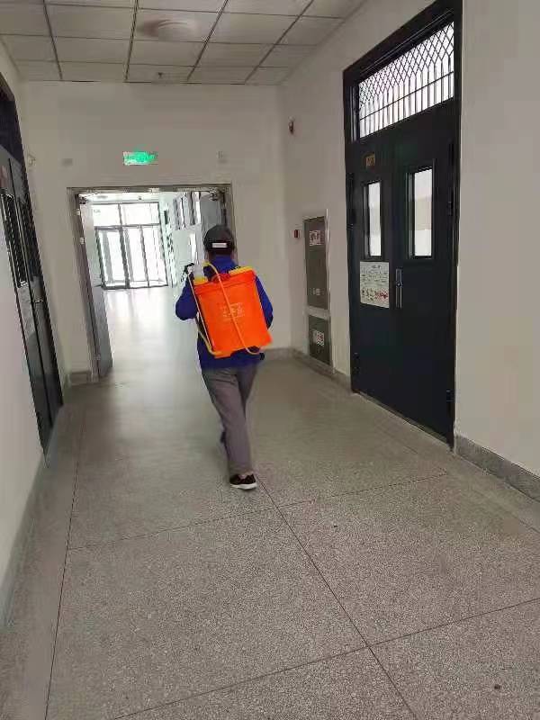 针对全面封校,面对人手短缺、物资匮乏、出行不便的情况,彭家坪物业将留校工作人员进行合理调配,保重点、抓落实,攻坚克难、责任到人,各部门紧密配合,严格做好各楼宇、公寓和道路环境的消毒工作、加强消毒力度,做好每日消杀记录。每日对各楼宇内公共区域、电梯间、教室、值班室、垃圾桶进行消毒防控;严格落实在岗员工的健康管理制度,每日监测更新在岗员工体温,实时掌握员工身体状况和活动轨迹;工程部加强日常巡检,每日及时检修各楼宇上下水、暖气管道跑、冒、漏、滴等现象,保障疫情封校期间学校的正常运行,为全体在校师生和值班人员搭建一道保护屏障。