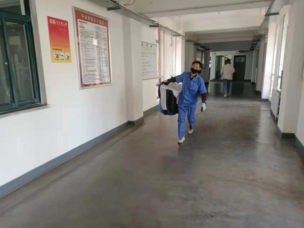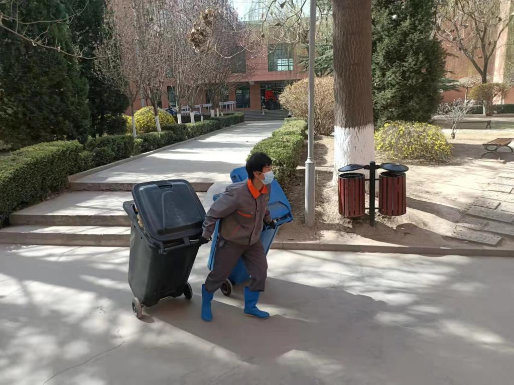 封校以来,学校两万多学生衣食住行都集中在宿舍,学生公寓的防疫管理便成为物业服务的重中之重,公寓部的工作人员放弃了家里的老人与孩子,担负起人员管控、垃圾外运、楼道消杀和学生的心理疏导等多项职能,虽异常劳累,但任默默坚持,在平凡的岗位做着不平凡的努力。保洁员的工作本来就是“用一人脏换万人净”的工作,封校以来,她们更忙碌了,笤帚、簸箕、拖把就是他们战斗的武器,对各公寓楼进行楼道的卫生清洁和一天三次的消毒工作,看似普通的工作却极其繁琐。为预防疫情期间垃圾堆积滋生细菌,所有的生活垃圾必须及时进行集中处理,她们加班加点,每天晚上持续到十一点左右,及时将垃圾处理,不给细菌和病毒留一丝余地。