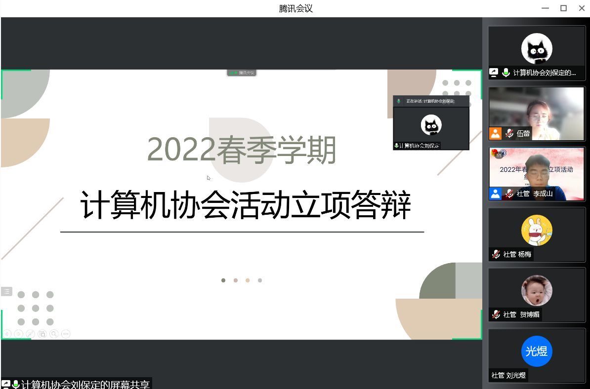 为进一步规范学生社团活动的管理,发挥学生社团在丰富校园文化生活方面的积极作用,按照“重点扶持,统筹发展”的原则打造“精品化、品牌化、阵地化”学生社团文化活动,4月10日,校团委学生社团管理中心在腾讯会议举办2022年春季学期社团活动立项答辩会,校团委相关负责老师和学生社团管理中心工作人员担任此次活动的评委,28个学生社团参与答辩。