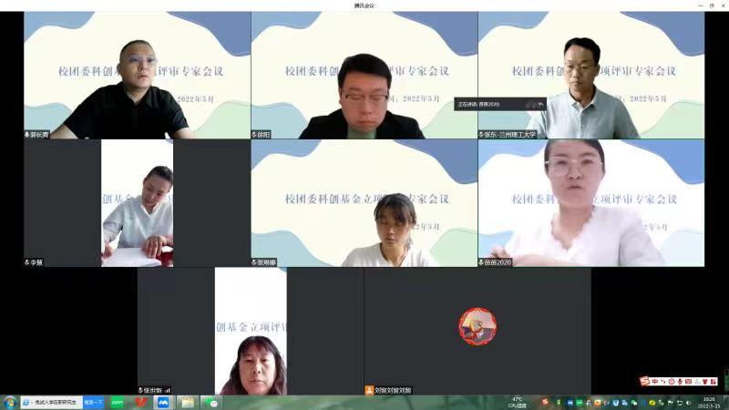 5月25日,由校团委主办的兰州理工大学2022年《大学生科技创新基金》申报项目专家评审会于腾讯会议线上举行,评审会由校团委副书记王文霞主持。