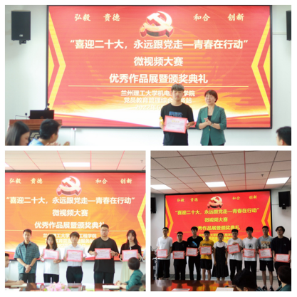 为引导广大学生坚持用习近平新时代中国特色社会主义思想武装头脑,坚定理想信念,积极担当作为,锤炼干事本领,在实现中华民族伟大复兴中国梦的新征程上奋勇前进,机电学院党员教育管理综合服务站面向学院全体学生,组织开展了“喜迎二十大、永远跟党走、奋进新征程”主题微视频大赛,比赛于4月下旬启动,经历报名阶段、制作阶段、评审阶段、公示阶段等过程,最终有19组作品获得奖励、其余作品获得优秀参与奖。学院于6月2日中午在机电楼五楼会议室组织优秀作品展暨颁奖典礼,机电学院党委副书记张轶、辅导员及各参赛队伍负责人共计40人参加了现场活动。