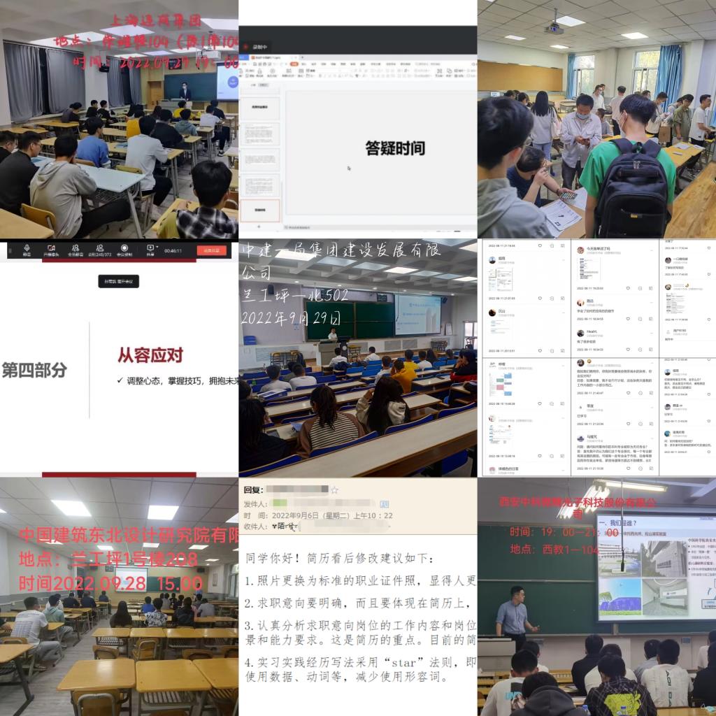 为帮助毕业生认清形势、提高求职就业能力,学生就业指导服务中心深入材料学院、机电学院、土木学院、能动学院、石化学院等10个学院开展就业形势分析与求职辅导系列主题讲座;举办毕业生求职能力提升线上训练营,全方位进行简历制作、面试技巧、求职应聘流程、网申技巧的培训讲授,共计4347名毕业生参加线上培训;组织开展线上简历门诊活动,为毕业生提供一对一简历修改服务,本次活动共修改学生简历800余份。