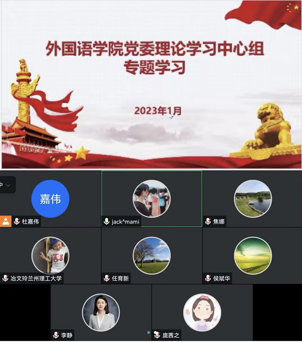 为高质量高标准开好2022年度民主生活会,1月7日,外国语学院党委理论学习中心组开展集体学习,在个人自学的基础上,集中交流研讨,深入学习贯彻党的二十大精神,认真学习新修订的《中国共产党章程》和习近平总书记在《求是》杂志2023年第1期发表的重要文章。学院党委书记杨雅琼主持学习。
