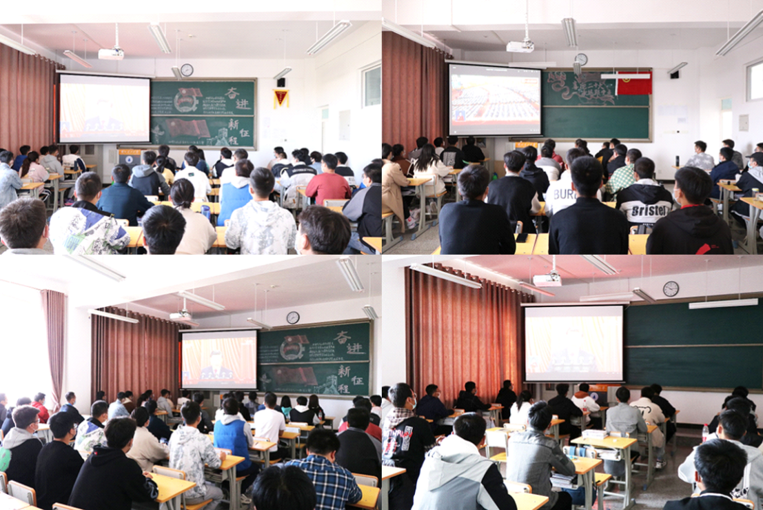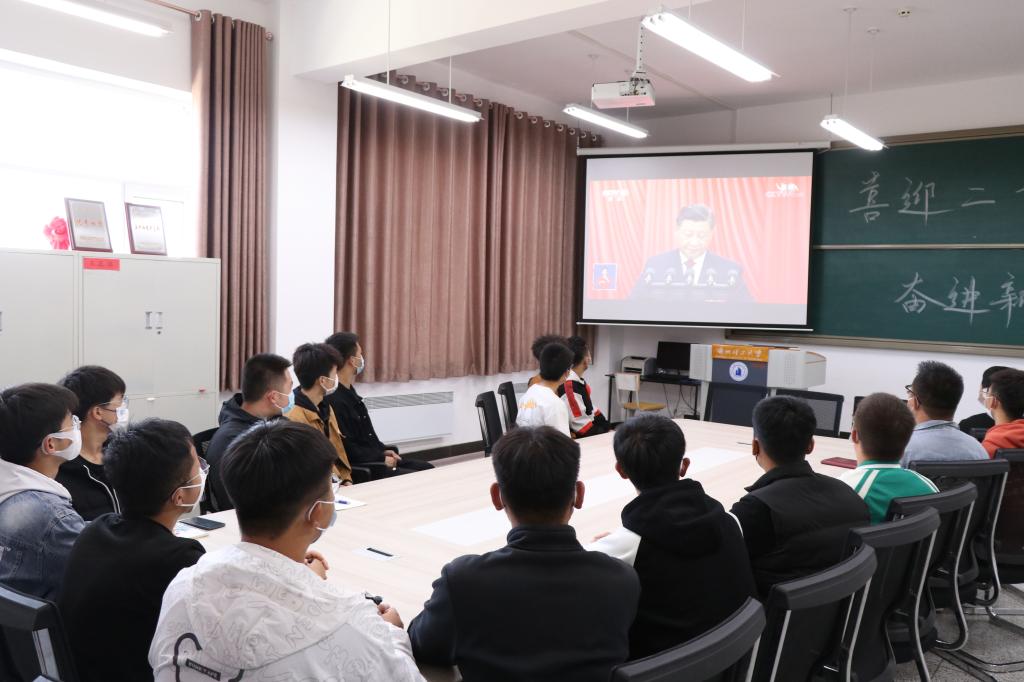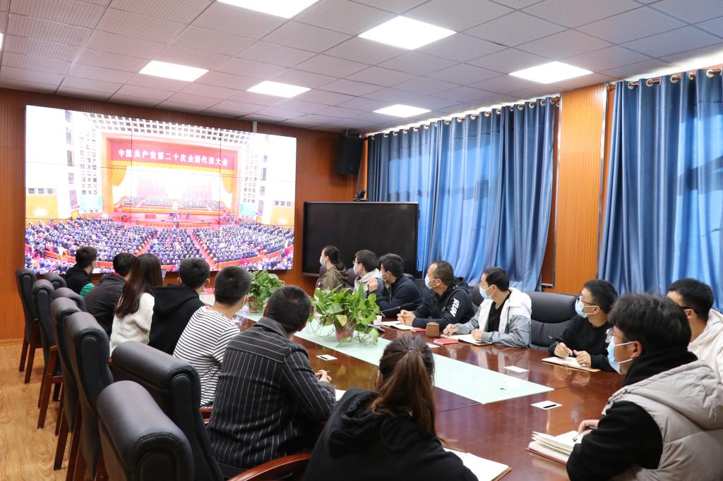 学院领导、教职工党支部及学生代表收看学习现场