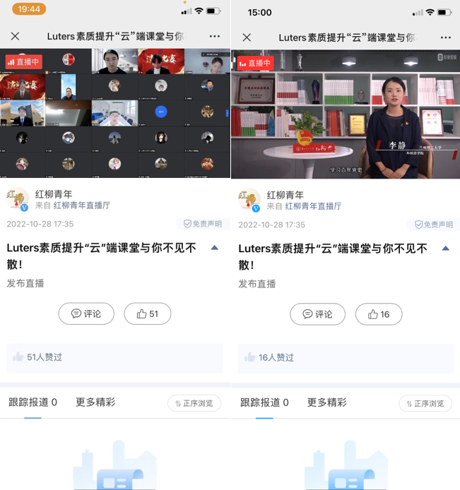 为深入学习宣传党的二十大精神,满足我校青年学生的精神文化需求,展现红柳青年积极进取的精神面貌,汇聚战“疫”青春正能量,校团委、校学生会、校研究生会积极“为同学做件事”,于10月28日至11月3日在红柳青年直播间推出系列素质提升“云”端课堂,开展网络思政育人,促进同学们综合素质的全面发展。