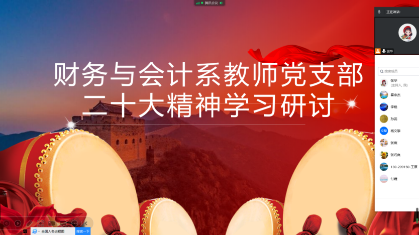 11月14日,经管学院财务与会计系教师党支部通过腾讯会议集体开展党的二十大精神学习研讨。