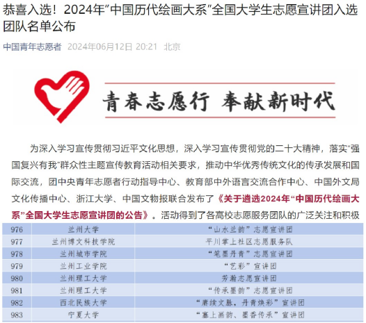 “芳瀚志愿宣传团”入选“中国历代绘画大系”宣讲团(980号)