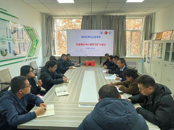 12月30日,材料科学与工程学院党委召开理论中心组学习扩大会议,传达学习了中国共产党兰州理工大学第四次党员代表大会精神、中国共产党兰州理工大学第四届委员会第一次全体会议精神,并对学院学习宣传贯彻落实会议精神相关工作进行了部署。会议由学院院长李元东主持,学院党委委员、领导班子成员及教师党支部书记参加会议。