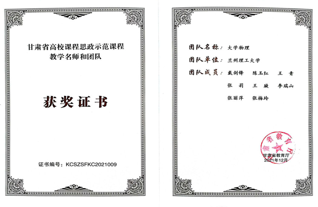 学科建设成果卓著。新增本科物理实验室、力学实验室及数学考试中心等实验教学面积1957.1平米,资产价值2098.7万元。教学研究项目“工科数学模型教学研究与实践”获得国家教学成果二等奖,“工科物理教学中培养学生工程素质的教学与实践”等多项教学研究项目获得省级、厅级教学成果奖。《高等数学》《大学物理》《工程力学》建成省级精品课程,“工科数学教学团队”“应用物理教学团队”获得甘肃省高等学校教学团队。《大学物理》课程获得国家级一流课程建设项目。应用物理专业为国家一流建设专业。《高等数学》、《大学物理实验》和《数学建模与数学实验》为省级一流本科课程。物理实验中心与力学实验中心均被授予省级实验教学示范中心。物理演示实验室为兰州市科普教育基地。2020年我校为“甘肃应用数学中心”共同建设单位之一;2022年我校为“甘肃省数学与统计学基础研究中心”共建单位之一。