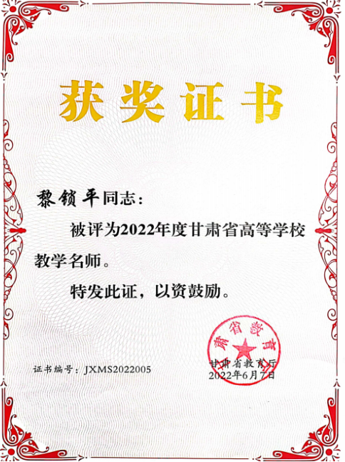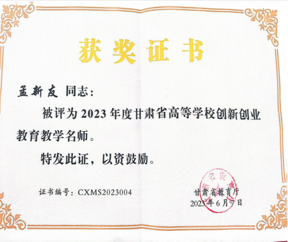 教师获得甘肃省创新创业名师称号 教师获得甘肃省技术标兵称号