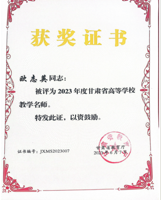 师资队伍结构合理。近五年培养博士生返校工作15人,引进博士师资27名,2023年柔性引进国家杰青、教育部长江学者特聘教授李宝军教授。共培育全国教育系统先进工作者1人,霍英东基金会第九届高校青年教师三等奖奖1人,省级教学名师4人,省高校青年教师成才奖10人,甘肃省园丁奖3人,甘肃省领军人才2人,陇原新秀1人,甘肃省杰青2人,甘肃省技术标兵4人,校级教学名师8人,学校师德师风标兵4人。学院多名教师在历届省级教学竞赛、学校中青年教师讲课竞赛中获奖。先后有20多人(次)获得学校教学优秀奖。