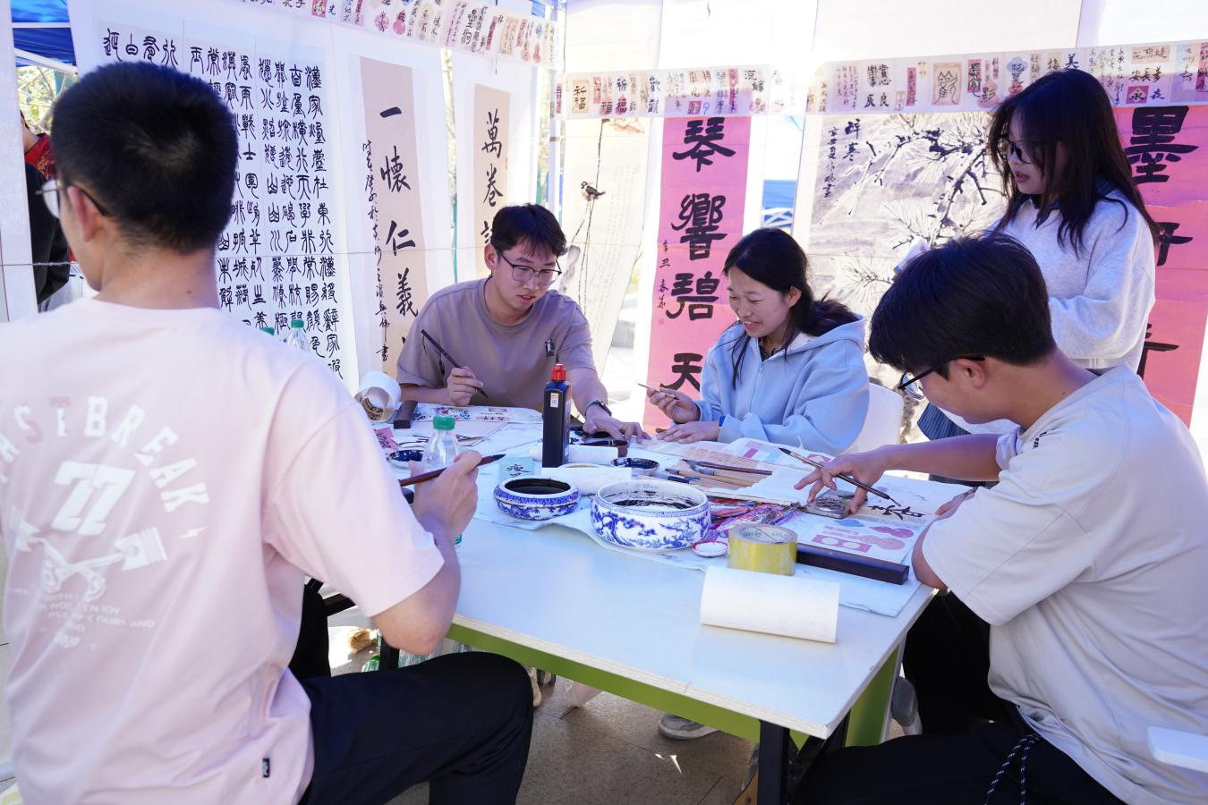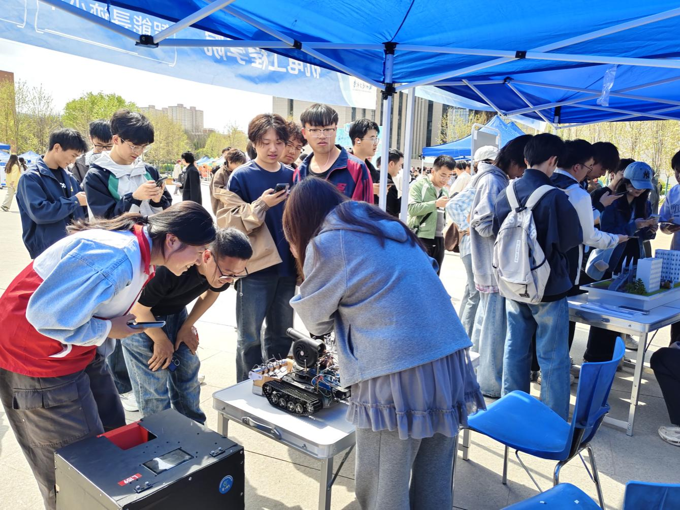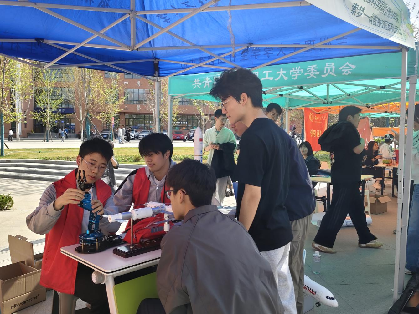 师生共同参与了“红柳文化活动集市”的活动。集市设有文化传承、科技创新、社团风采、阅读共享四大主题互动展区。集市中,机器人互动、书画创作、汉服体验、图书漂流等丰富多彩的互动项目吸引众多师生驻足体验。同时,青春展演在广场中央继续上演,机器人舞蹈、歌曲联唱等节目精彩纷呈,现场气氛热烈。