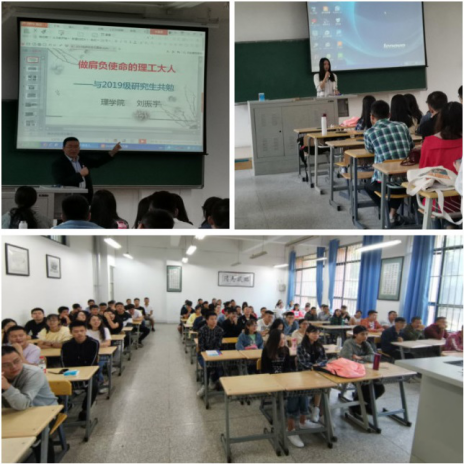 刘振宇以“做肩负使命的理工大人”为主题,从兰州风土人情、就业现状、心理健康、习近平总书记来甘肃考察等几个方面给大家进行了介绍,并对2019级新生提出了殷切的希望。赵倩倩介绍学校和学院关于研究生教育和管理的相关规定。