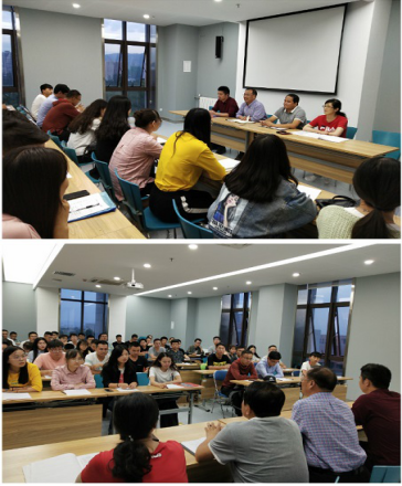 欧志英介绍了学院招生情况、专业背景和师资情况,说明了奖助学金政策,希望大家沉下心做好学术科研。副院长马军要求2019级研究生认真学习《研究生手册》,简要说明了导师双选规则,希望大家按照培养计划顺利完成课程考试、答辩和盲审等环节。研究生阶段和本科有区别,大家要以学术科研为主,学院也会对大家严格要求。