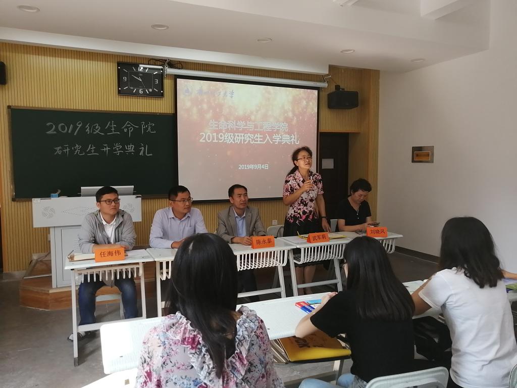 金城九月,秋高气爽。9月4日上午九时,生命科学与工程学院2019级研究生开学典礼在兰工坪校区尚学楼305教室举行。学院党委书记陈永泰、副院长李志忠、杨明俊、任海伟、食品系刘晓风教授、研究生辅导员唐爱丽等参加活动。开学典礼由学院党委副书记武军莉主持,2019级全体硕士研究生参加。