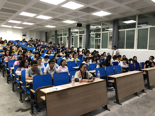 9月10日晚,外国语学院邀请新东方知名培训师王瑶瑶在兰工坪校区尚学楼502教室举办语言学习培训讲座。学工部学生学业发展指导与国防教育中心王春晖老师、学院党委副书记焦娜、辅导员李媛媛、2017和2018级全体学生参加讲座。
