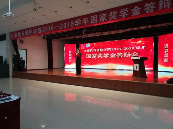 9月16日中午,计算机与通信学院在兰州理工大学彭家坪校区大学生活动中心举办国家奖学金答辩会。学院党委书记曾贤虎、副书记白杨,学生处资助中心主任任耀宏,计通学院团委书记宗培培老师,辅导员代表、班主任代表、学生代表共7人组成了答辩评委会,2019级全体新生参加答辩会。