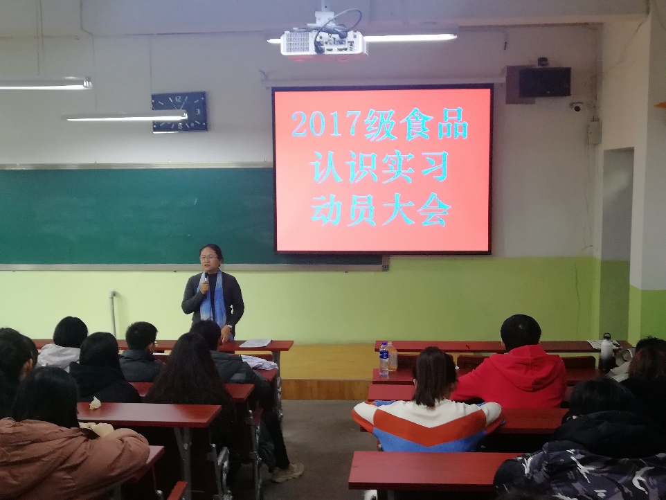 12月18日,生命科学与工程学院食品科学与工程专业老师为2017级本科生召开了一次动员大会,会议主题是针对“认识实习”,为同学们讲解实习的内容、企业、注意事项与实习报告等事项。