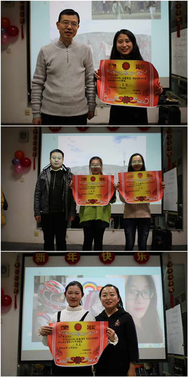 12月30日下午,院研究生会各个成员在辅导员李媛媛老师带领下对此次参加寝室文化节活动的寝室进行了检查与评比。各个寝室充分发挥自己想象力与创造力,为我们呈现了一个个独具特色的寝室装扮,其中有充满年味的春联福字,有生机满满的鲜花点缀,更有温馨搞怪的照片墙等。最终,在综合评比之下,研二304寝室荣获第一名,研二301寝室荣获第二名,研一524寝室、523寝室荣获第三名。12月31日晚,在综合楼English Bubble,任育新院长、李媛媛、邱俊作老师为这些获奖寝室颁发了奖状。