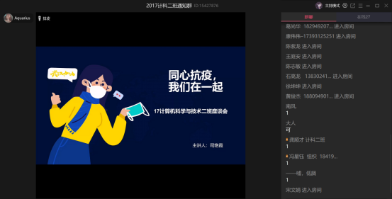 2020年5月7日至15日,计通学院针对疫情面向全院开展“同心抗疫,我们在一起”线上班级座谈会。