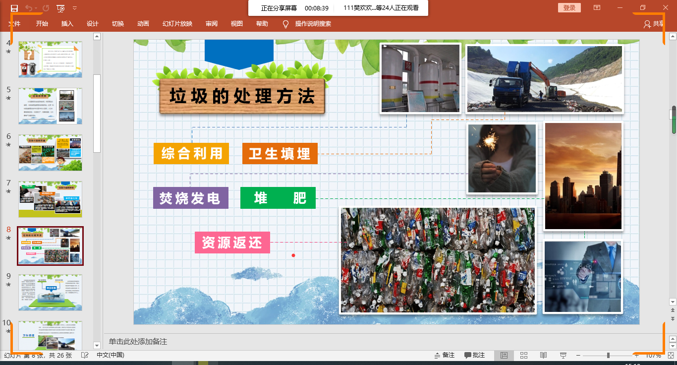 为了帮助同学们更加全面地了解垃圾分类,学习有关垃圾分类的知识,学院组织各年级开展“垃圾分类”线上班会活动。通过PPT,视频等向班级学生讲解垃圾分类有关知识,呼吁大家在日常生活中做好垃圾分类,为保护环境贡献自己的一份力量。主题学习结束后,同学们积极讨论发言,大家纷纷表示应该从节约一度电、一张纸、从垃圾下楼做起,积极践行“美丽中国,青春行动”活动主题。