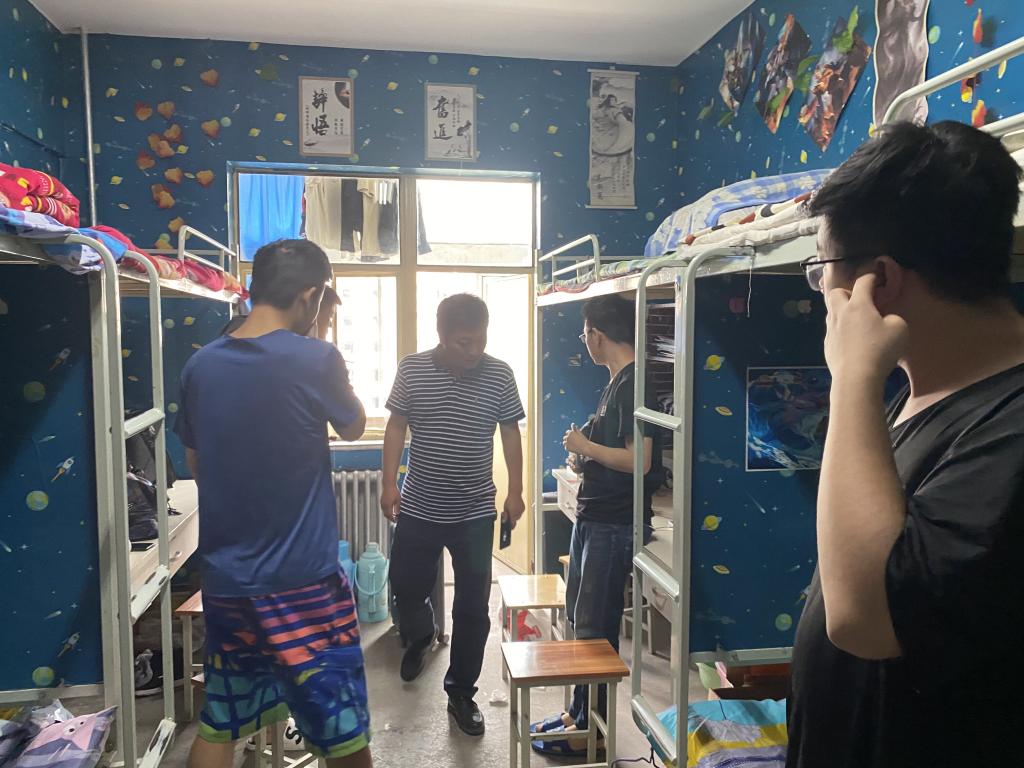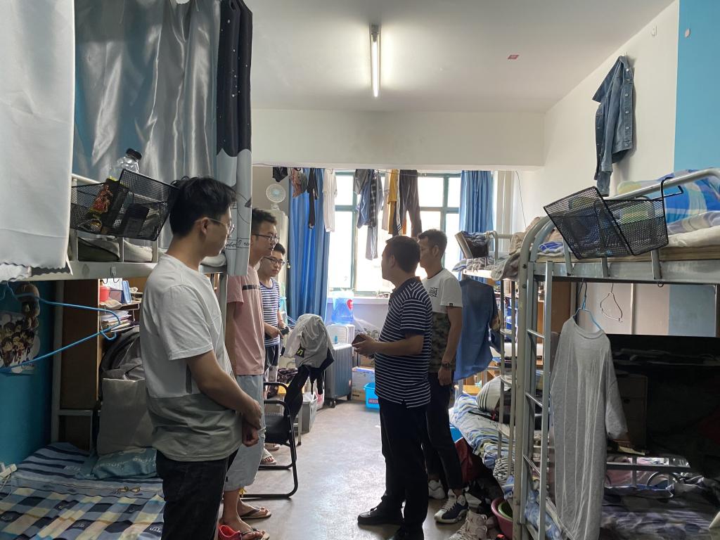 7月10日,学院党委副书记朱毓杰逐一走访学生宿舍,了解学生搬迁准备情况和困难需求,叮嘱学生做好行李打包、个人财务安全等。