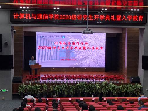 8月29日下午,计算机与通信学院在彭家坪校区图书馆报告厅举行2020级研究生新生开学典礼暨入学教育会议。学院院长冯涛、学院党委书记曾贤虎、副院长年福忠以及部分研究生导师、学科办吴敏、辅导员金亚蓉参加,由学院党委副书记白杨主持。