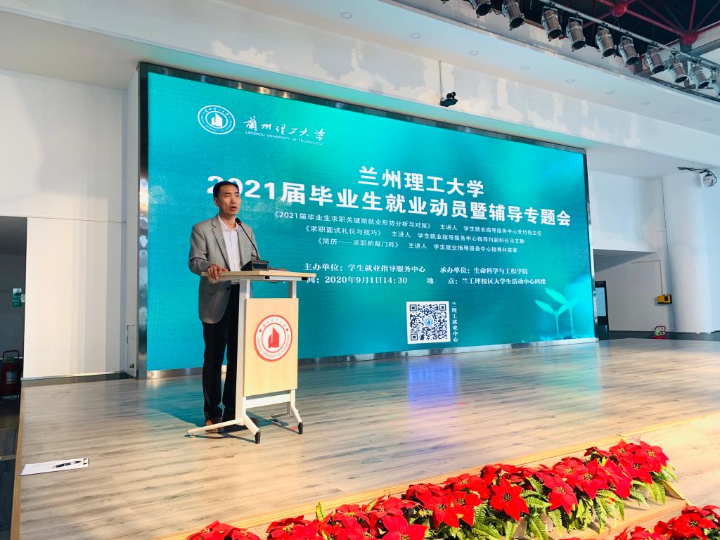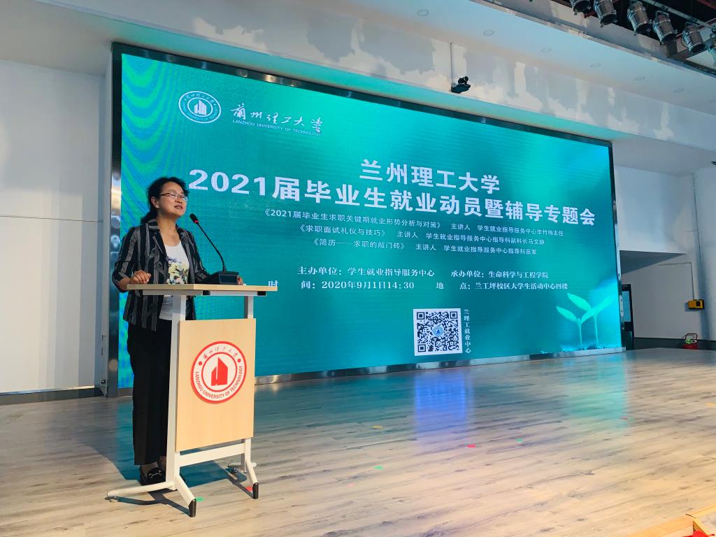 9月1日下午,生命学院在兰工坪校区大学生活动中心四楼举行2021届毕业生就业动员暨辅导专题报告会。会议邀请学生就业指导服务中心主任李竹梅、马文静和苗军老师为同学们做专题报告。学院党委书记陈永泰、副书记武军莉、辅导员王苍海、全体2021届研究生、本科生230余人参加了报告会。大会由陈永泰主持。