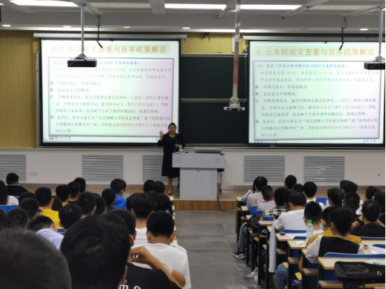 会上,李萍对新同学的到来表示热烈欢迎,并对2020级研究生、博士生新生加入土木工程学院表示祝贺。随后李萍结合专业学位研究生培养的特点,详细讲解了研究生培养体系与培养方案,使同学们明确了研究生阶段的学习目标和发展方向。同时对研究生管理工作规定、研究生课程学习与考核管理办法、考场纪律及违纪处理暂行办法、论文查重与盲审政策等进行了详细解读。她指出,希望全体新生都能够树立坚定的学术信仰,脚踏实地,积极进取,开拓创新,在土木工程学院实现自我价值,不负青春,不负年华。随后,研究生辅导员俞莉宣讲了研究生日常管理、奖助体系等文件精神,帮助新同学更好地适应研究生阶段的学习与生活。