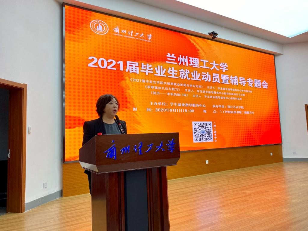 为进一步做好2021届毕业生就业工作,设计艺术学院邀请学生就业服务中心主任李竹梅一行,于9月1日晚在兰工坪校区图书馆二楼报告厅,举行了2021届毕业生就业动员暨辅导专题会。设计艺术学院党委副书记杨利玲主持本次会议,各年级辅导员及2021届全体毕业生参加此次会议。