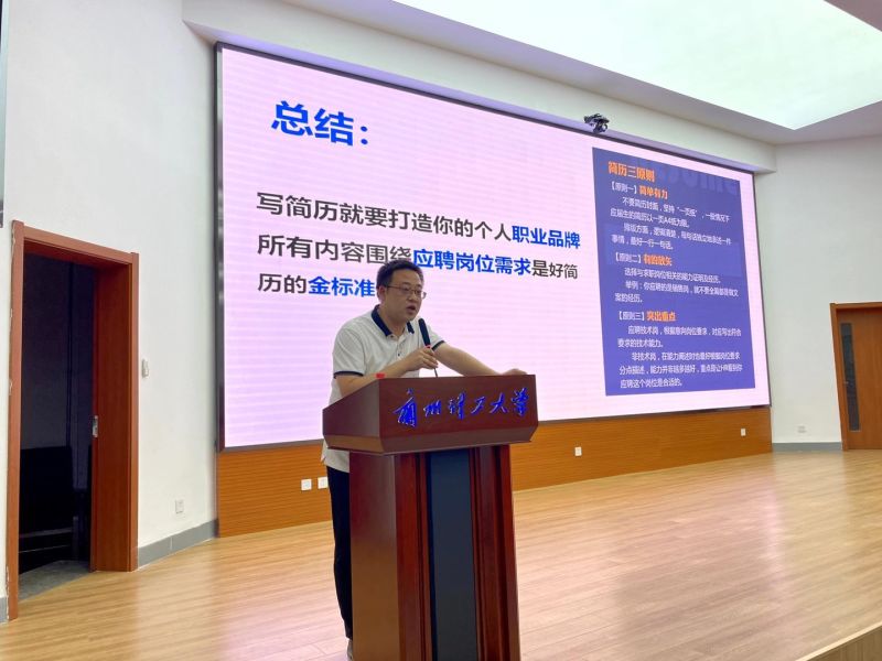 李竹梅首先从三个方面出发,对就业中的突出问题提出解决办法。一方面,毕业生要准确把握就业面临的新形势。在疫情的影响下,毕业生就业困难,对于找到心仪工作可能信心不足,但在求职过程中,同学们要充分做好就业准备,积极就业。另一方面,在求职的过程中,一定要把握好来自求职的三大因素的影响,并提前做好应对准备。最后一方面,李竹梅主任与毕业生们分享了大家即将面对的招聘会的整个流程,并强调在求职过程中要有自己的目标,不要盲目跟风。在求职中面临的机遇,要积极抢抓,增加就业机会。随后,苗军老师、马文静老师分别从如何制作一份优质的简历和求职面试礼仪与技巧,为全体2021届毕业生作出了系统的讲解。