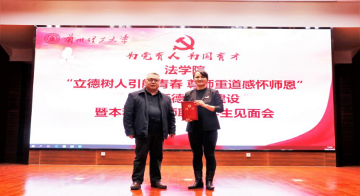 李香枫发表讲话,充分肯定了法学院切实推进师德师风建设,加强教学联动开展的“本科生导师制”工作。她表示,法学院事业的每一次发展、每一个成就,都源于全体教师的砥砺奋进和执着追求。面对十四五开局之际所要承载的责任十分重大,必须深刻地认清形势、转变观念、勇于担当、奋发作为。为党育人,为国育才,不折不扣落实“四有好老师”要求,齐心协力共同为法学院发展注入新的活力。她强调,全体教师要提高政治站位,强化使命担当,不懈弘扬高尚师德,为学校事业发展、服务地方发展集聚。